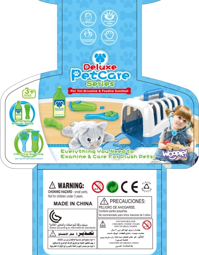 Set malog veterinara marke WOOPIE idealan je za djecu od 3 godine koja vole životinje i igre uloga. Sadrži sve potrebno za njegu plišanog psića – od četke do šampona – te omogućuje djeci oponašati pravu brigu o ljubimcima.