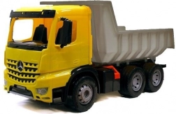 Ovaj dječji kiper Mercedes Giants Dump Truck nudi nevjerojatnu zabavu za djecu. Model AROCS je troosovinski s realističnim dizajnom, uključujući žutu kabinu, crno podvozje i srebrnu prikolicu.