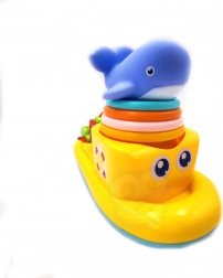 Ovaj šareni set za kadu donosi djeci od 12 mjeseci mnogo interaktivne zabave. Plutajući brod opremljen je rotirajućim vodenim mlincem koji se pokreće mlazom i uči djecu uzročno‑posljedičnim odnosima. Mekani gumeni kit pri stisku cvili, čime potiče osjetilnu percepciju i sigurnu, ugodnu igru.