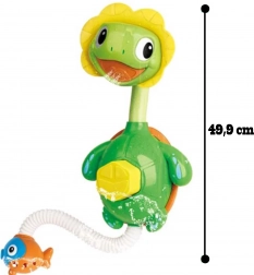 Pritisnite trbuščić i gledajte kako iz glavice kornjačice veselo šiklja mlaz vode. Idealan mini tuš za radosno kupanje.