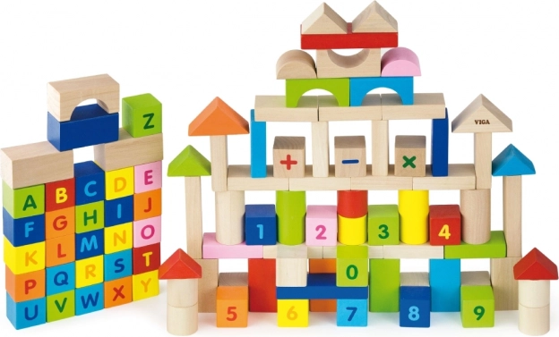 VIGA drvene edukativne kocke 100 kom – slova i brojevi
