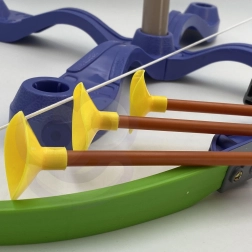 Set je izrađen od izdržljive plastike s glatkim rubovima i mami na ponovnu igru zahvaljujući atraktivnim bojama. Djeca vježbaju logičko razmišljanje, manualne vještine i koordinaciju, dok se zabavljaju gađajući različite ciljeve na meti.