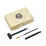 - Kompletna oprema: blok s fosilom, čekić, dlijeto i kist za nježno čišćenje.