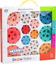 Konstruktivne kocke Wafle marke WOOPIE zaintrigirat će i zabaviti vaše dijete. Njihovi šareni elementi podsjećaju na pahulje. Zahvaljujući jednostavnom povezivanju i slaganju, od njih se mogu napraviti zanimljive trodimenzionalne konstrukcije. Kocke imaju otvore koji omogućuju koso povezivanje, ne samo okomito.