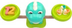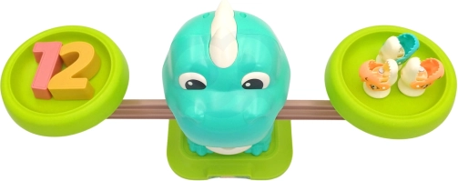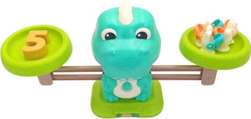 Ova interaktivna dinosaurus vaga uči djecu uravnoteživanju i uspoređivanju te ih istodobno uvodi u svijet brojeva. Brojčani utezi 1–10 odgovaraju broju figurica dinosaura – primjerice “2” izjednači dva mala dinosaura. Zahvaljujući tome djeca lako shvaćaju brojnost, jednakost i zbrajanje/oduzimanje. U kompletu su i kartice sa zadacima za vođeno vježbanje.