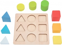 Ova drvena edukativna igračka spaja zabavu i učenje. Djeca razvrstavaju i umeću obojene geometrijske oblike u pripadajuće otvore, čime nenametljivo usvajaju prepoznavanje oblika i boja, vježbaju strpljenje i jačaju vizualnu percepciju. Jednostavna, ali promišljena konstrukcija idealna je za prve logičke igre.