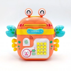Ovaj šareni rak je više od kasice – to je interaktivni sef, kasica i dječji ruksak u jednom. Djeca u njega mogu spremati kovanice, novčanice i male dragocjenosti, postaviti vlastitu lozinku i uživati u realističnim elementima poput tipkovnice s tipkama, imitacije čitača otiska i okretnog gumba za otvaranje.
