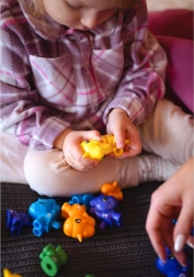 Dijete i roditelj mogu zajedno igrati s veselim, povezivim plastičnim igračkama u obliku jednoroga, što potiče razvoj koordinacijskih vještina.