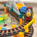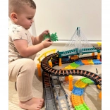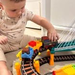 Ovaj veliki kreativni set WOOPIE spaja dvije omiljene igre: električni vlakić i trkaći automobil. Zahvaljujući odvojenim krugovima djeca se mogu istovremeno voziti vlakom i automobilom, slagati različite konfiguracije trasa i promatrati kako kompozicija savladava višerazinski vijadukt sa svjetlosnim efektima.