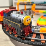 U kompletu su lokomotiva s dva vagončića za teret, automobil na baterije, stupovi za nadvožnjake, drvo, znakovi i drugi dodaci koji stvaraju autentično okruženje. Realističan zvuk vlaka pojačava doživljaj igre i razvija osjetilnu percepciju.