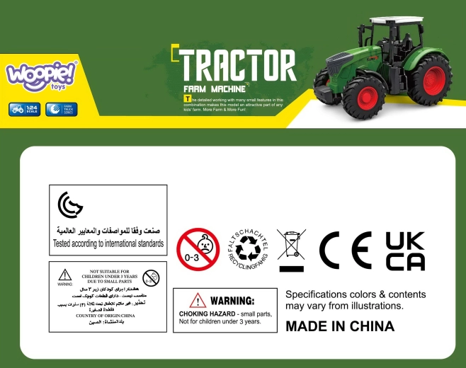 Ovaj zeleni traktor marke WOOPIE donosi djeci autentičan doživljaj farmerskog svijeta. Detaljno izrađena kabina, sjedala i volan podsjećaju na pravi stroj, dok veliki gumirani kotači savladavaju i neravne podloge u dvorištu ili na igralištu.