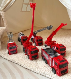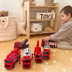 Veliki set vatrogasnih vozila 6u1 marke WOOPIE donosi djeci od 3 godine sate uzbudljive igre. Šest realističnih vozila s pokretnim elementima (izvlačne ljestve, zakretna ramena, koš, podizna platforma) i inercijskim pogonom na prednjoj osovini razvija maštu, suradnju i samosvjesnost malih vatrogasaca.