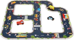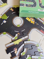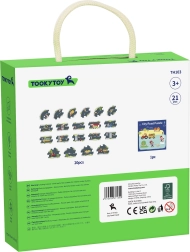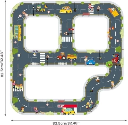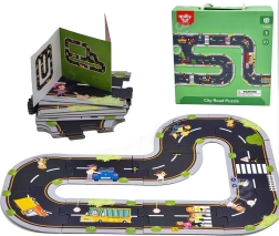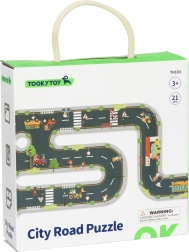 Sastavite vlastiti grad i trkaću stazu s puzzle setom TOOKY TOY. Pakiranje sadrži 21 dijel (cestovne puzzle i knjižicu s prijedlozima trasa) od kojih možete složiti razne varijante cesta s raskrižjima, kružnim tokovima i prometnim elementima. Nakon sastavljanja nastaje velika igraća površina do 82,5 × 82,5 cm koja razvija finu motoriku, kreativnost i maštu djece od 3 godine.