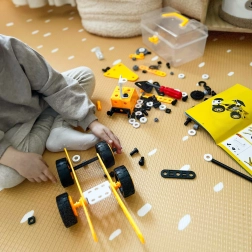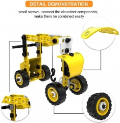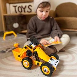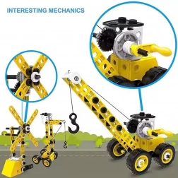 Set građevinskih vozila marke Woopie omogućuje djeci da stvore 8 različitih modela, poput dizalice, vjetrenjače i kamiona. Ova kreativna igračka razvija finu motoriku, logičko razmišljanje i prostornu maštu.