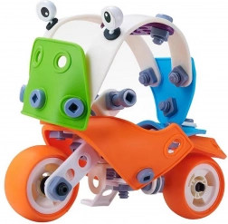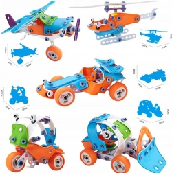 Ovaj set sadrži 118 elemenata koji omogućuju izradu različitih vozila, poput buldožera, helikoptera, aviona ili kartinga. Pomaže razvijati kreativnost i manuelne sposobnosti djece, što im omogućuje otkrivanje svijeta gradnje i dizajna s velikim zadovoljstvom i radošću.