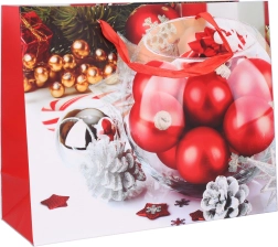 Stilska božićna darovna vrećica veličine M idealna je za elegantno pakiranje blagdanskih iznenađenja. Praktične dimenzije 26 × 32 × 10 cm primaju knjige, kozmetiku i manje poklone. Odaberite zimski motiv i uživajte u brzom i lakom pakiranju bez rezanja i lijepljenja. Vrećica je od kvalitetnog čvrstog papira i prikladna je za svaku božićnu prigodu.
