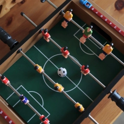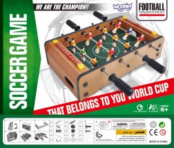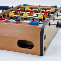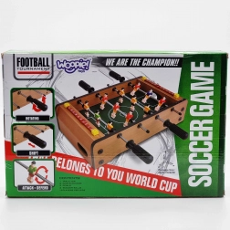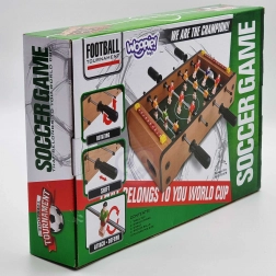 Uživajte u napetim mini-mečevima s kompaktnim stolnim nogometom WOOPIE. Stabilna drvena konstrukcija, metalne šipke i ergonomske ručke osiguravaju glatko upravljanje figurama i udobno igranje. Integrirana brojila rezultata s obje strane pomažu vam pratiti tijek igre.