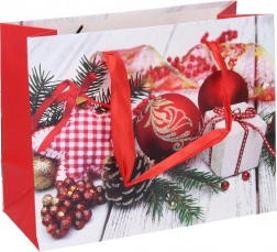 Ova božićna darovna vrećica odličan je izbor kada želite razveseliti obitelj i prijatelje lijepo zapakiranim iznenađenjem. Zahvaljujući dimenzijama 18 × 23 × 10 cm prikladna je za sitnije darove i dodatke koje želite predati s elegantnim blagdanskim štihom.