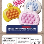 Pop It izgleda poput igraćeg kontrolera s plavim i ružičastim gumbima te proizvodi zabavne zvukove za stimulaciju igre.