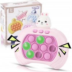 Interaktivna igra Pop It Zec je antistresna igračka prikladna već za najmlađu djecu. Igra ispušta vesele zvukove koji zabavljaju djecu i obogaćuju igru. Mala je i lako ju je ponijeti sa sobom. Pop It donosi radost djeci i odraslima koji je rado biraju. Razvija um, manualne vještine, koordinaciju oko-ruka i pomaže u borbi protiv stresa.