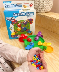 Zabavna društvena igra Woopie za djecu od 3 godine razvija finu motoriku, brze reakcije i koordinaciju ruka-oko. Cilj je nahraniti svoju figuricu što većim brojem šarenih kuglica pomoću gumba koji pokreće mehanizam za hvatanje. Igra je brza, šarena i interaktivna, prikladna za 1–4 igrača te odlična za obiteljsku zabavu i putovanja.