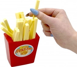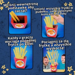 Sadržaj pakiranja: čašica za pomfrit, set pomfrita (uključujući dva “kriva” pomfrita koja pokreću iskakanje svih).