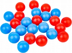 Set od 24 plastične loptice (12 crvenih i 12 plavih) lagan je, izdržljiv i idealan za ponovnu igru kod kuće i na proslavama.