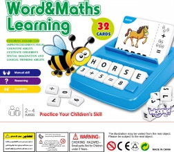 Igra sadrži plavu plastičnu podlogu i bijele blokove za učenje kroz slaganje riječi i matematičkih jednadžbi.