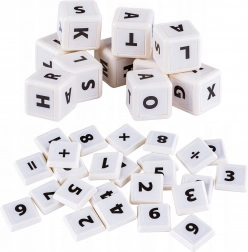 - 32 karte, 1 podloga, 10 kocaka sa slovima, 20 brojčanih kocaka, 5 kocaka sa simbolima