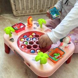 Zabavna interaktivna igra za djecu od 3 godine: ružičasti ribarski stolić WOOPIE s rotirajućim ribicama, melodijama i košaricama za bodove. Razvija koordinaciju ruka-oko, potiče zdravu natjecivost i zabavlja cijelu obitelj. Kvalitetna izrada, prekrasne boje i jednostavno sastavljanje.