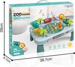 Interaktivni zeleni stolić WOOPIE odličan je izbor za djecu i odrasle. Šareno izdanje privlači pažnju, bočne košarice potiču natjecateljski duh, a simpatične životinjice vesele na pogled. Pokretna ploča s ribicama povećava težinu i trenira koordinaciju oko–ruka. Zvučni efekti i melodije daju igri poseban šarm i drže djecu u akciji.