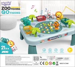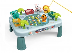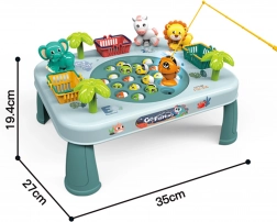 Paket sadrži: 1 igraći stolić, 4 noge, 3 štapa, 3 košarice za ribe, 3 figurice životinja, 3 palme, 21 malu ribicu, naljepnice.