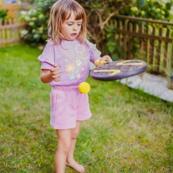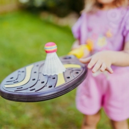 Sve spremite u izdržljivu torbicu s patentnim zatvaračem koja štiti opremu i omogućuje da je ponesete bilo kamo – u vrt, park ili na more. Set pomaže poboljšati koordinaciju oko–ruka, reflekse te prirodno motivira na kretanje na svježem zraku.
