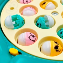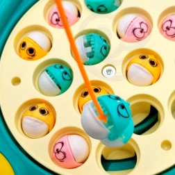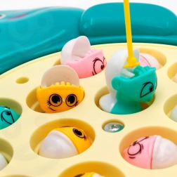 Računate na brzinu, spretnost i preciznost? Zeleni dinosaurus skriva rotirajući ribnjak pun šarenih ribica koje se otvaraju i zatvaraju. Vaš je zadatak pomoću štapa uloviti što više ribica prije kraja runde – zabavan izazov za male i velike ribare.