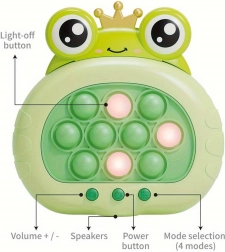 Elektronička antistresna igra Žabica POP IT je izvrstan izbor za zabavu i razvoj djece. Sa svojim veselim zvukovima i interaktivnim mogućnostima, ova igračka je omiljena i kod djece i kod odraslih. Pomaže u smanjenju stresa, razvija um, manualne vještine i koordinaciju vida i pokreta. Zbog svoje kompaktne veličine idealna je za zabavu na putovanjima.