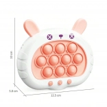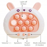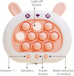 Zabavna i interaktivna igra POP IT Zeko donosi zadovoljstvo i djeci i odraslima. Razvija um, manuelne vještine, koordinaciju oka i ruke te pomaže u borbi protiv stresa. Ova igračka nudi četiri različita načina igre koji će svakoga držati u napetosti.