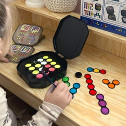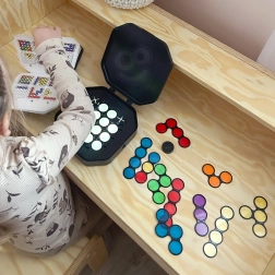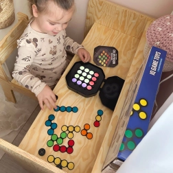 Otkrijte pametno osmišljenu igru koja spaja logičke izazove s kolorističkom kreativnošću. Djeca slažu prozirne diskove prema karticama s uzorcima te zahvaljujući osvijetljenoj ploči prate kako se boje slojevito preklapaju i miješaju. Igra prirodno razvija prostornu maštu, koordinaciju oko–ruka i uči planirati korake unaprijed.