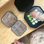 U pakiranju ćete pronaći 50 uzoraka od lakih do zahtjevnih. Kompaktno i izdržljivo izvedenje prikladno je i za dječju sobu i za ruksak na put. Dovoljno je odabrati karticu, uključiti osvjetljenje i početi slagati – uspjeh dolazi kada uzorak na ploči točno odgovara kartici.