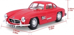Doživite čaroliju povijesne elegancije s metalnim modelom Mercedes-Benz 300SL u crvenoj varijanti. Ovaj model u mjerilu 1:24 brenda Bburago nudi vjerne detalje i preciznu izradu.