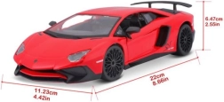 Ovaj model Lamborghini Aventador SV od marke Bburago savršen je dodatak za svaku kolekcionarsku zbirku. Njegovi precizni detalji uključujući aerodinamičan dizajn i vidljivi stražnji spojler oduševit će svakog automobilskog obožavatelja. Dimenzija modela je 22 cm, što ga čini idealnim dekorativnim elementom ili igračkom.