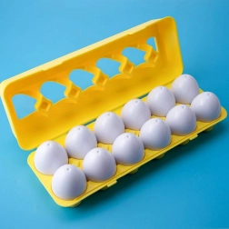 Žuti “kutija za jaja” drži sve dijelove na okupu i olakšava pospremanje i prenošenje. Svako jaje ima svoje mjesto, pa se ništa ne gubi.