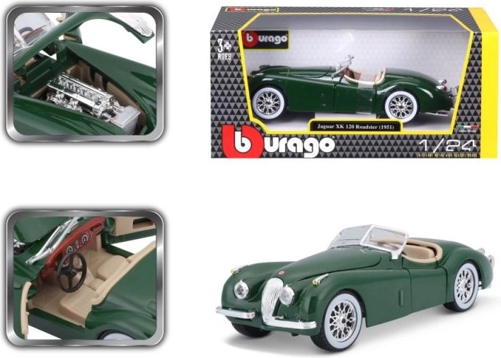 Dopunite svoju Bburago kolekciju još sjajnim modelima automobila u mjerilu 1:24. Metalni model iz serije Bburago 1:24 Jaguar XK 120 Roadster (1951) zelena