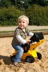 Dječji utovarivač Lena u crno-žutoj izvedbi od visokokvalitetne plastike koja zadovoljava europske standarde. Opremljen je pokretnom rukom s kašikom za utovarivanje što pruža sjajnu zabavu za djecu.
