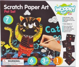 Kreativni set grebalica WOOPIE ART&FUN donosi djeci jednostavan i zabavan način za stvaranje dojmljivih, šarenih ilustracija. Dovoljno je uzeti drveni stilus i nježnim grebanjem otkrivati dugine boje ispod crnog sloja. Djeca će uživati u iznenađenju postupno otkrivajućih nijansi i motiva.