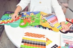 Pomoću naljepnica djeca vježbaju finu motoriku, prepoznaju oblike i boje, a uz to uče i engleski jezik.