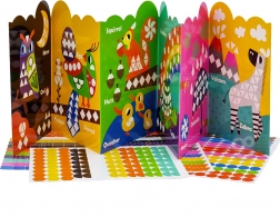 Set sadrži 504 komada uključujući 503 šarene naljepnice, koje se mogu primijeniti na razne motive životinja i pojava.