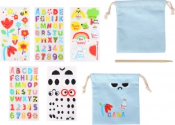 Potaknite djecu da izrade vlastitu vrećicu baš po njihovoj zamisli. Šarene slovne i brojčane naljepnice omogućuju složiti ime ili nadimak i dotjerati vrećicu veselim motivima. Rezultat je originalan i praktičan – idealan za sitnice, bojice, male igračke ili blaga.