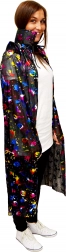 Stilizan plašt za male čarobnjake i vještice izrađen je od sjajnog materijala s tiskom šarenih bundeva. Ima udoban ovratnik i vezanje na uzicu oko vrata za lako stavljanje. Duljina 120 cm idealna je za dječje kostime za karneval, Noć vještica i tematske proslave.