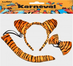 Pretvorite se u trenu u preslatkog tigra! Ovaj karnevalski set za djecu sadrži sve potrebno za brzu i udobnu preobrazbu – tigraste uši na obruču za kosu, mašnicu oko vrata i elegantan rep. Idealno za karneval, školske priredbe i tematske proslave.