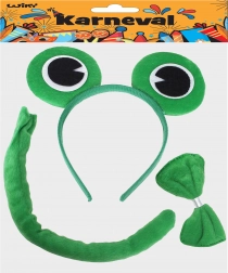 Pretvorite se u trenu u simpatičnu žabu! Ovaj karnevalski set za djecu sadrži obruč s ušima i mašnicu za vrat, zahvaljujući kojima ćete stvoriti brz i efektan kostim za maskenbal, dječje proslave i školske priredbe. Pogodno od 3 godine.